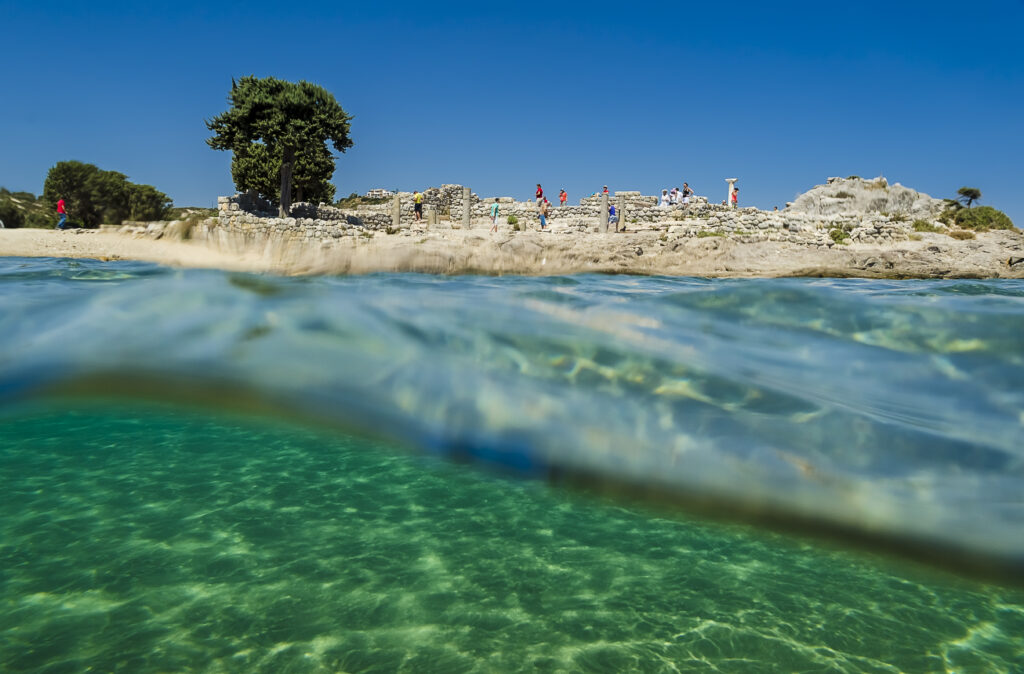 What sets Agios Stefanos apart is the presence of ancient ruins just meters from the sea. Located near Kefalos, this beach allows you to swim beside the remnants of an early Christian basilica. The nearby islet of Kastri, with its blue-domed chapel, adds even more to the view. The atmosphere is quiet and spiritual—ideal for travelers who appreciate history and tranquility.